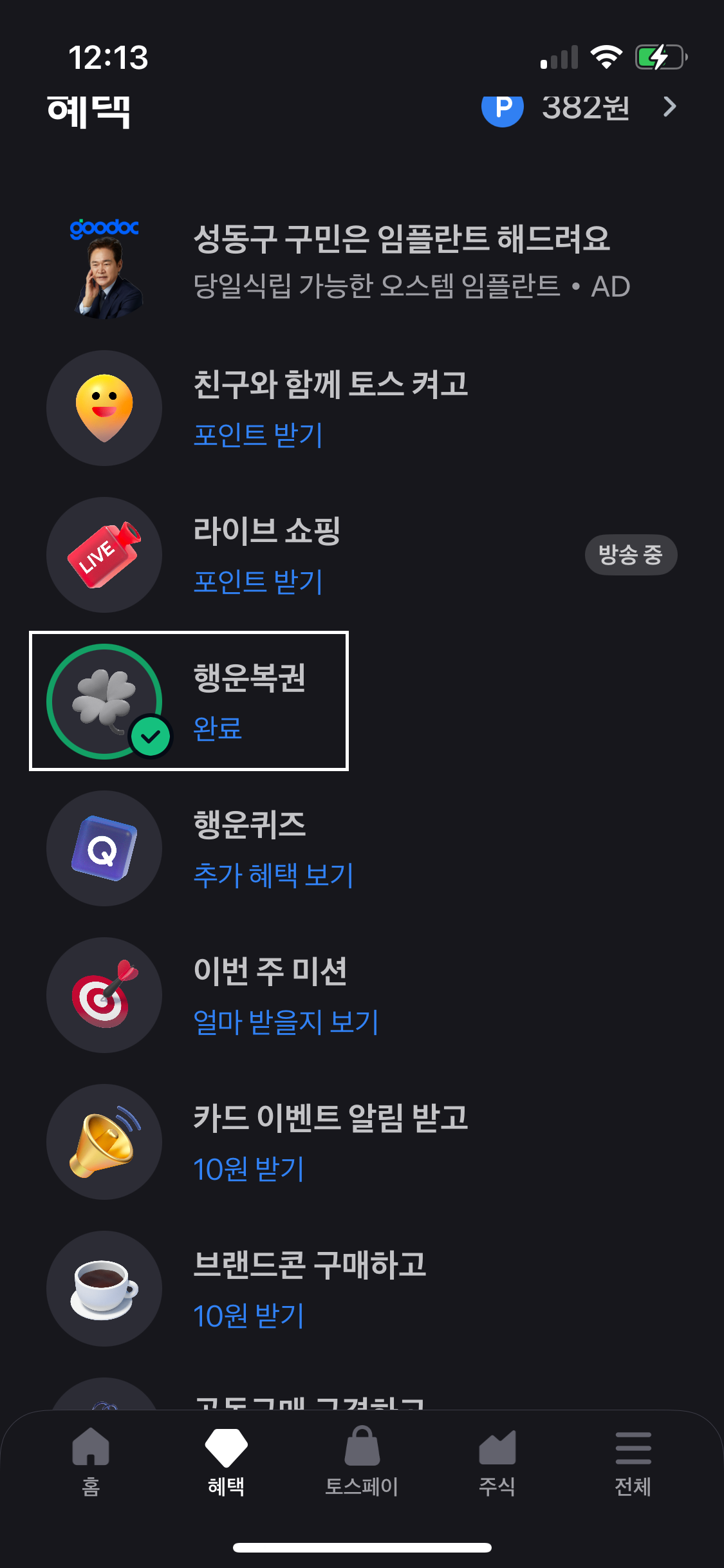 [혜택]-[꽝 없는 100% 당첨]은 비추천합니다. [보너스봉투열기]를 눌러 간혹 당첨금이 천 원 이상 나올 때도 있었지만 잃는 날이 더 많았습니다.